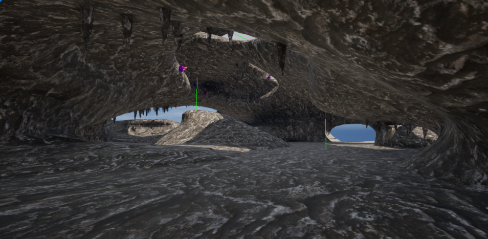 The Tool should have exposed variables and parameters as to let the User control the overall shape and form of the Caves and the frequency and location of its placed Objects. The Cave should also use different materials based on the angle of its normal to create varied faces on its walls & inclines from its floor and roof.